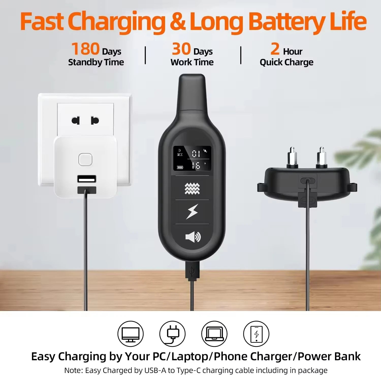 Long Range Capability: With a 3300ft range, this shock collar ensures effective training from a distance, perfect for expansive properties.