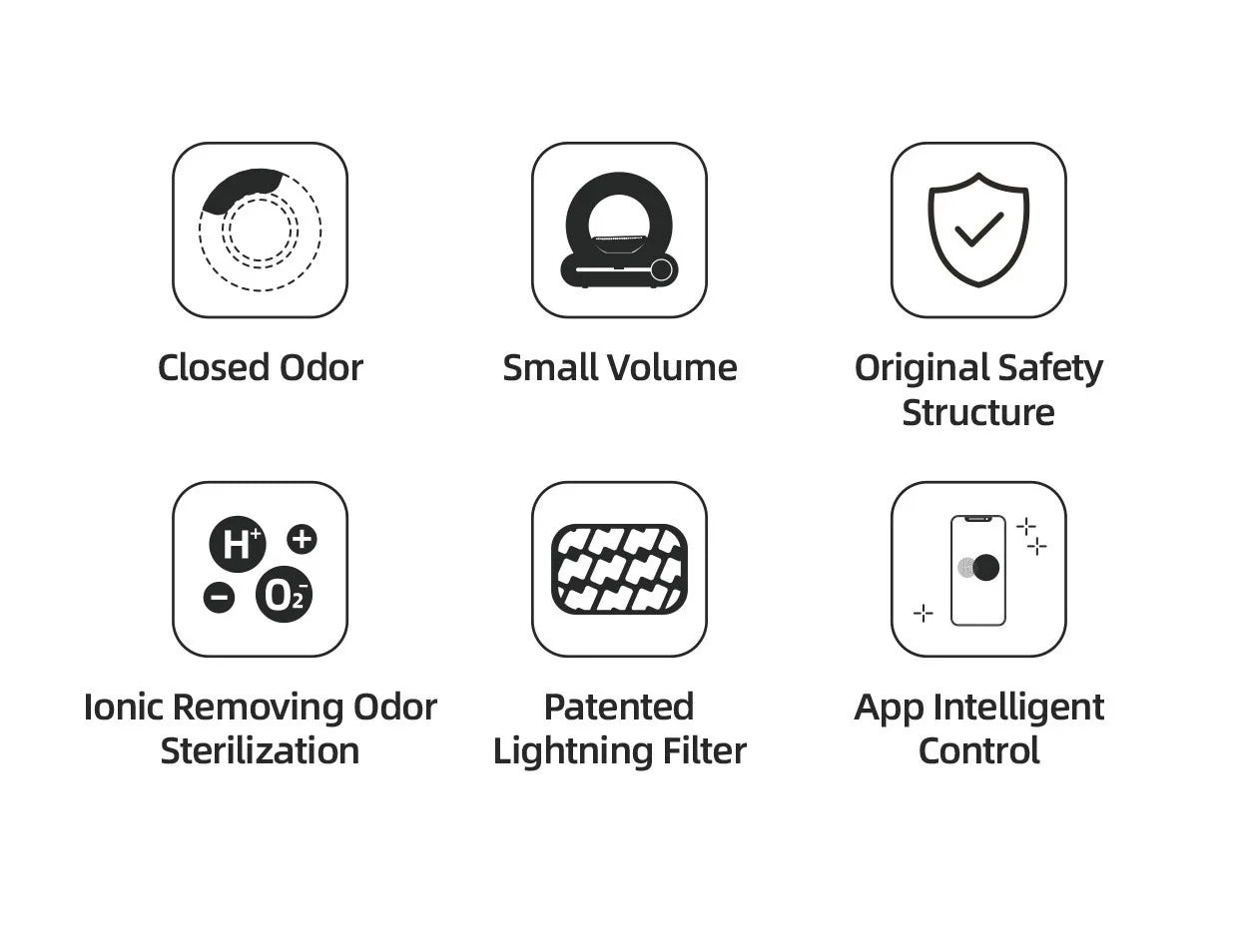Innovative Deodorization Technologyself cleaning cat litter box adopts innovative electronics Ionic deodorizer, which is safe and non-toxic, no need to replace any consumables. The Ionic deodorizer will start working after your cat has finished pooping, reducing odor emissions into the room.